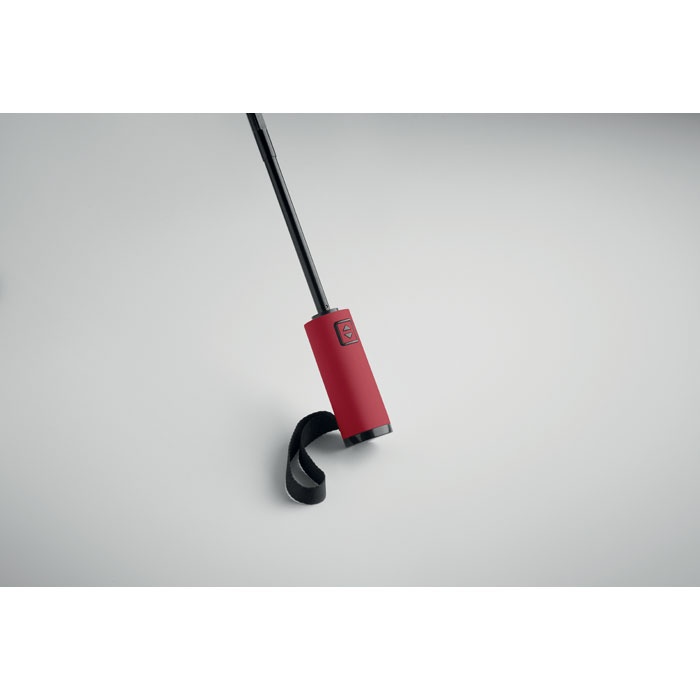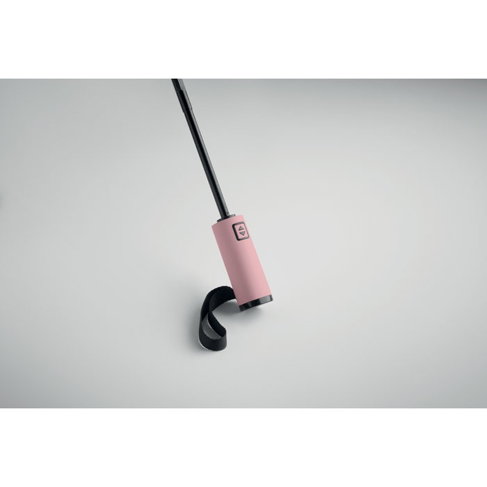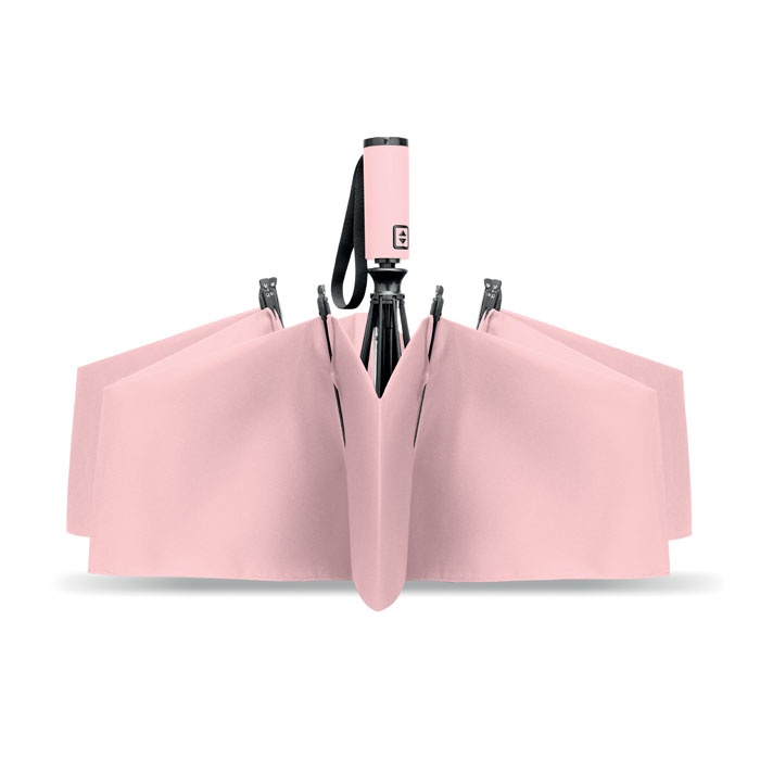 | Umbrelă 23 anti-furtună, 3 falduri inverse 190T RPET pongee și husă asortată. Deschidere și închidere automată, cadru complet negru, nervuri din fibră de sticlă și mâner din ABS finisat cu cauciuc.