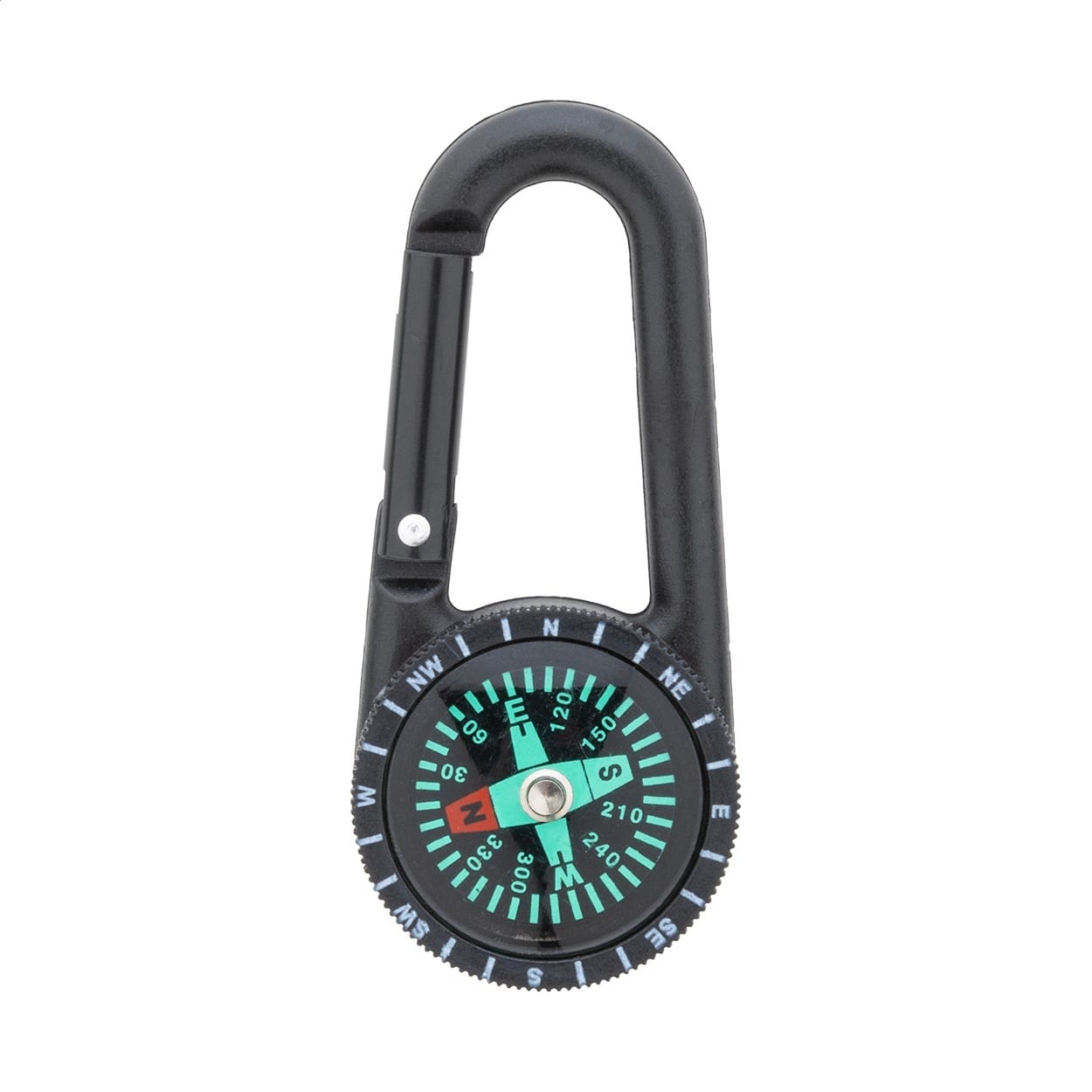 Plastic carabiner with compass.