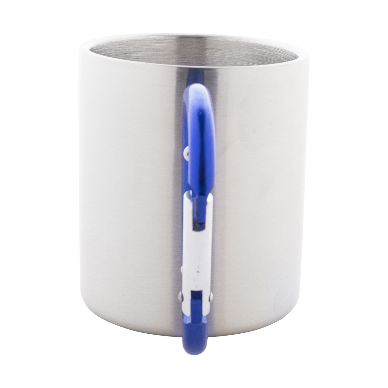 Stainless steel mug with coloured carabiner handle, 200 ml.