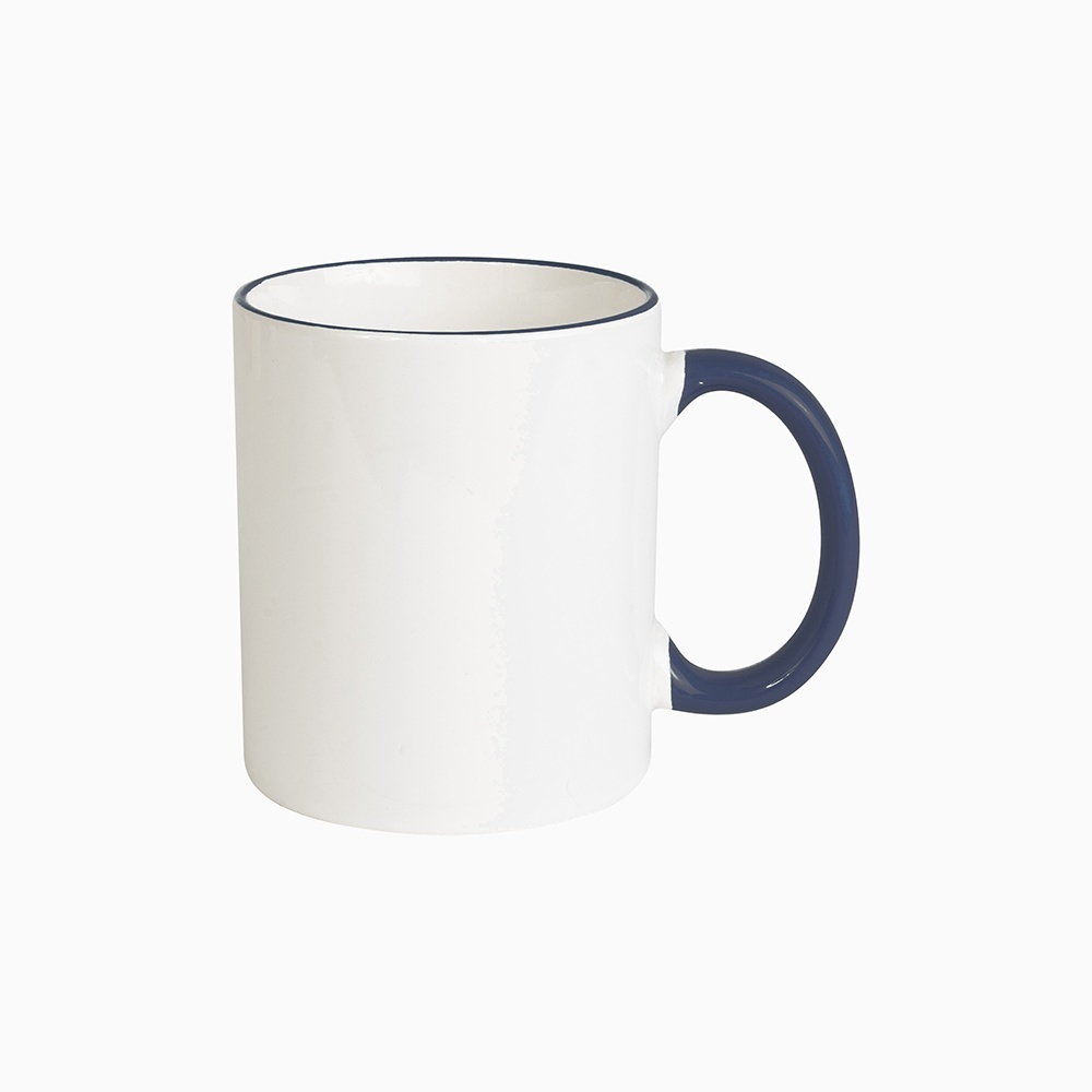 White grade A ceramic mug with coloured handle and edge suitable for dishwashers and microwaves, white box 0,32 L. For sublimation printing| Cană ceramică albă, calitate A, cu mâner și margine co