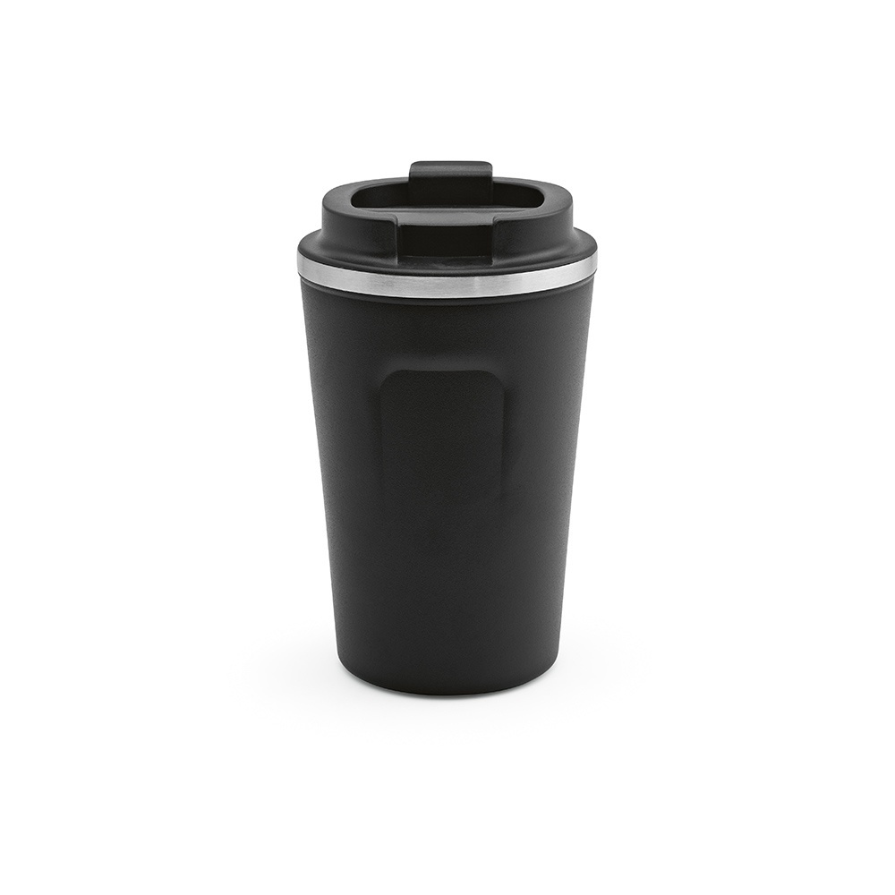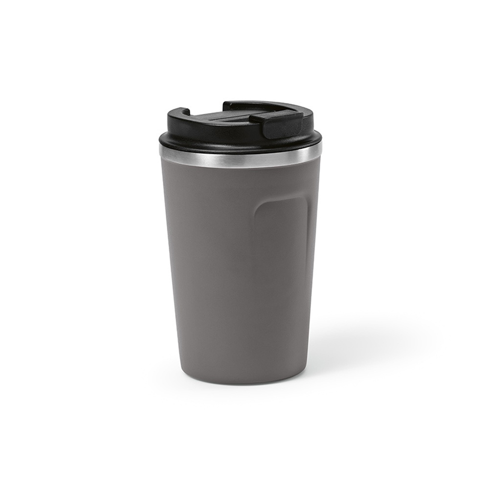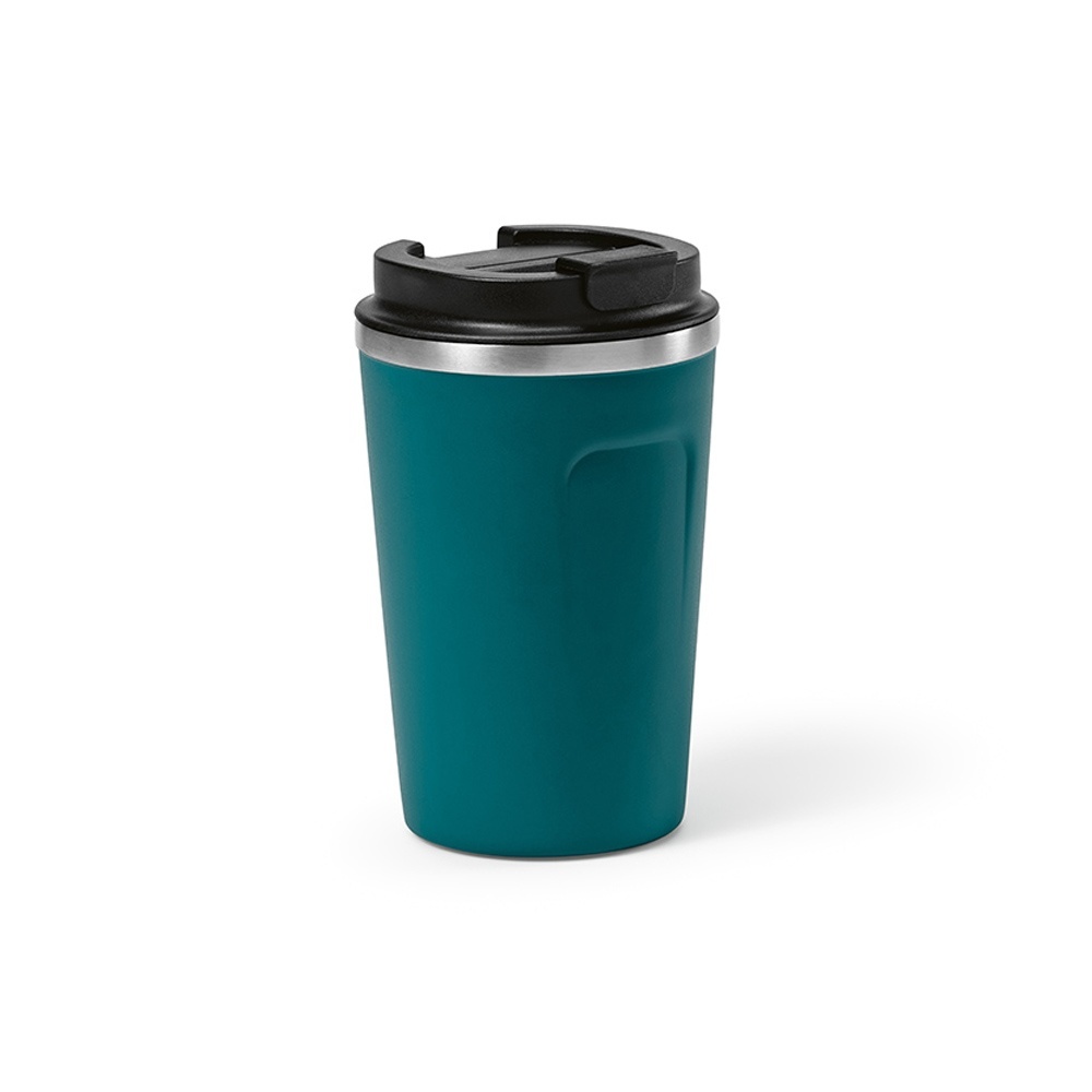 Limpopo 490ml (400ml net) recycled stainless steel travel cup. The double-wall vacuum insulation ensures your drinks stay at the perfect temperature (4 hours hot and 18 hours cold). With a handy lift-up lid.