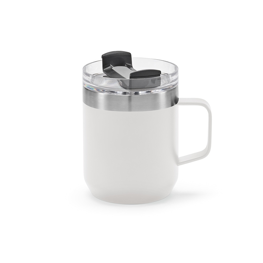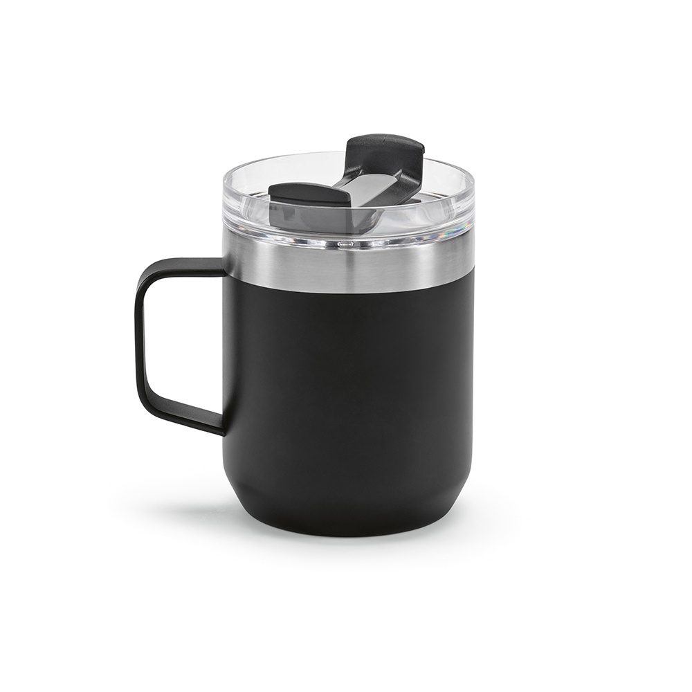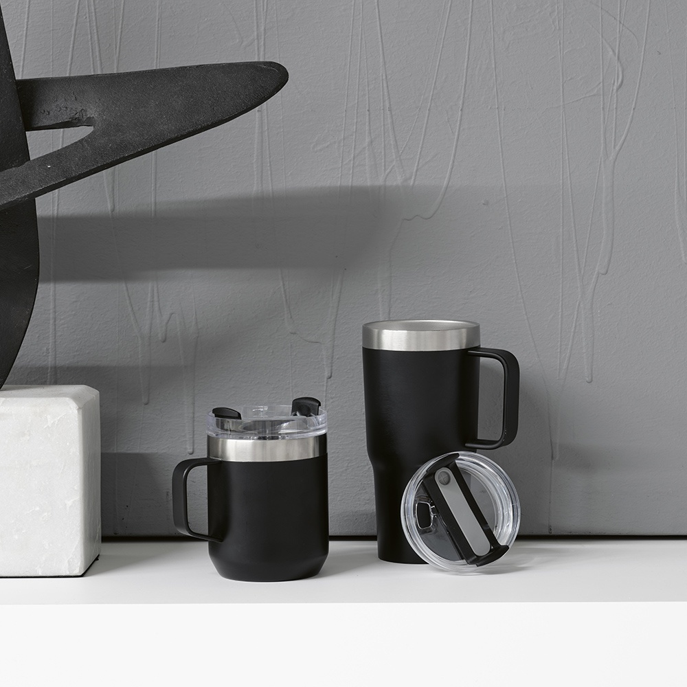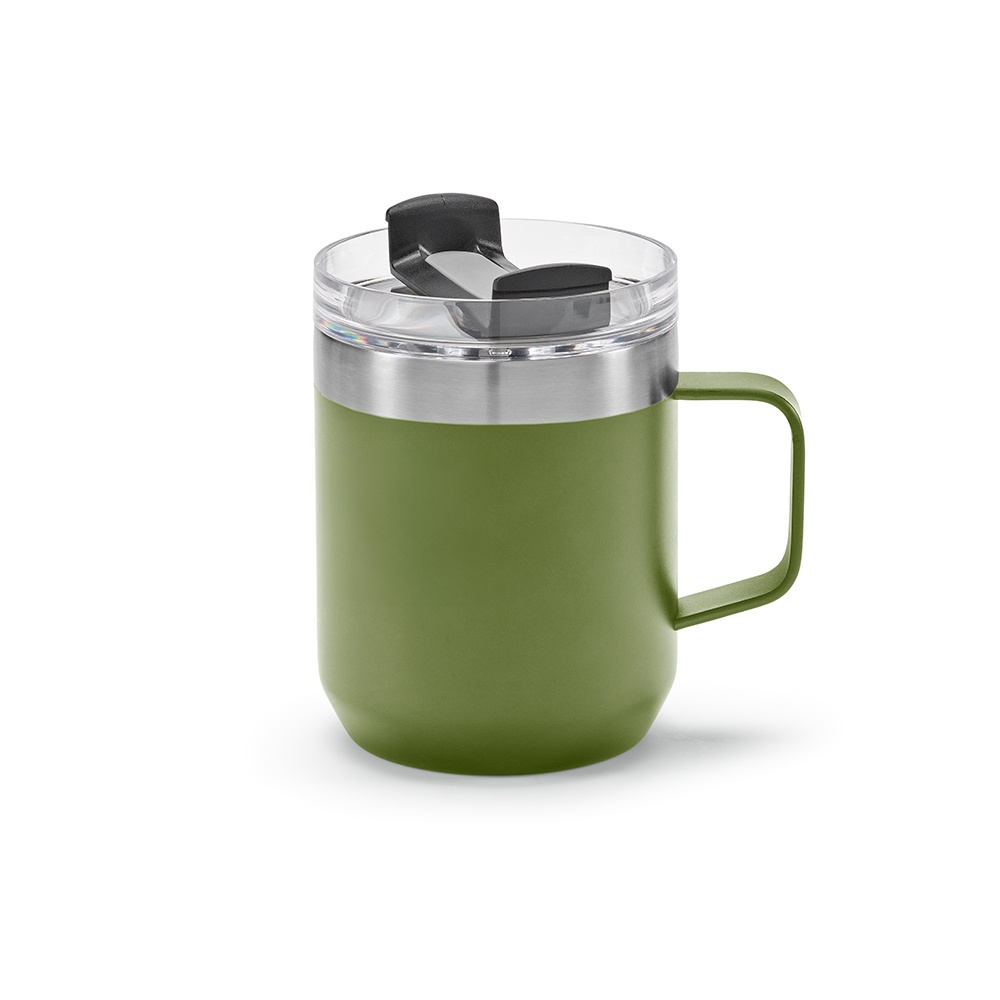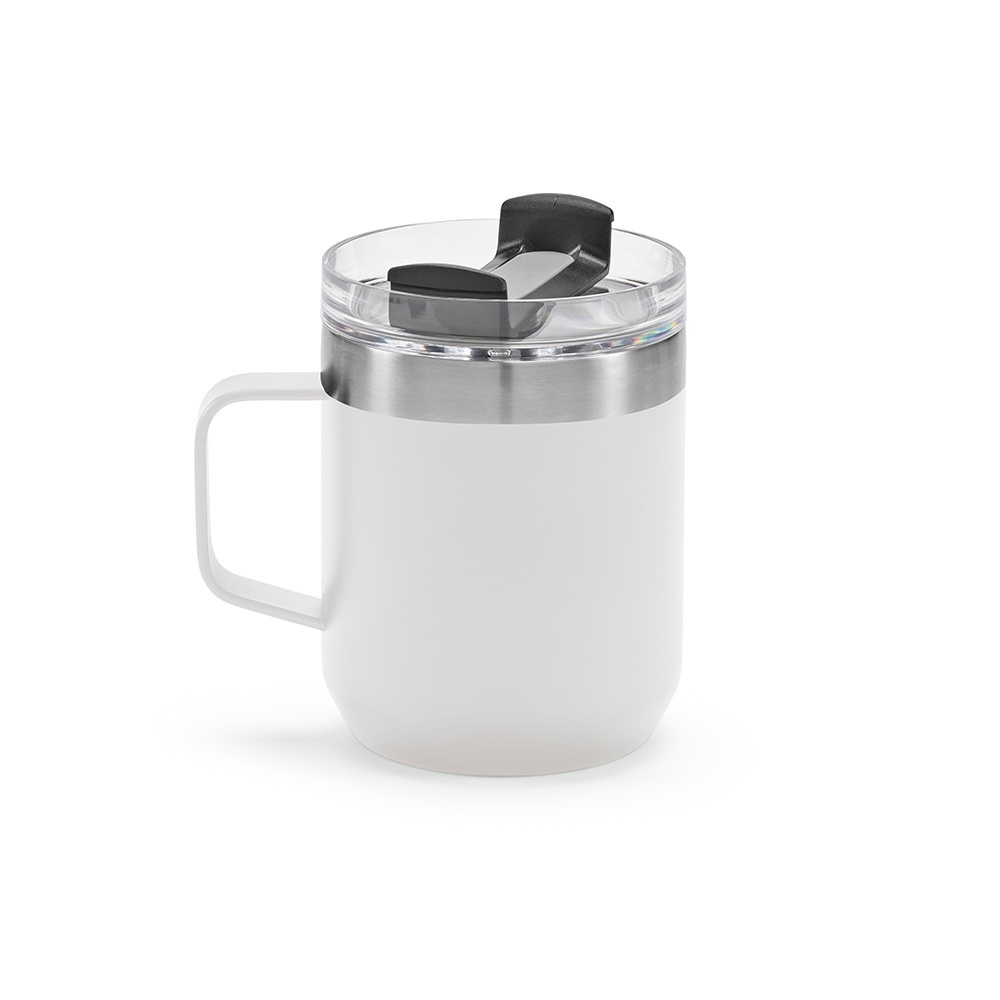 Shinano 440ml (350ml net) mug crafted from recycled stainless steel. Vacuum-insulated for ideal temperature (6 hours hot and 18 hours cold). Rotating lid with 3 functions: drinking, placing a straw and closing.