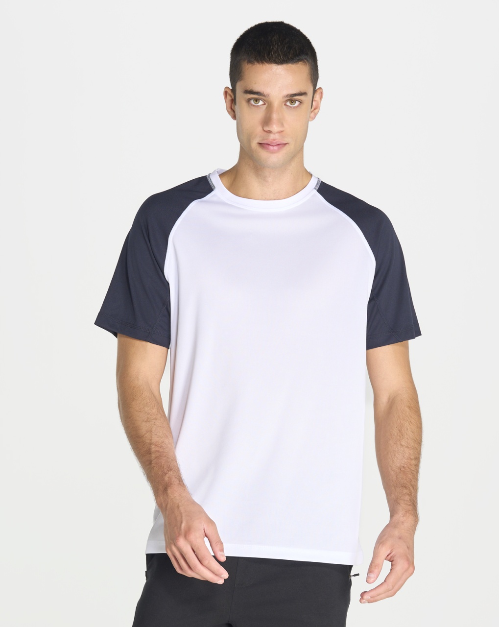 Tricou sportiv pentru bărbați cu mâneci raglan în contrast și cusături decorative pe mâneci. Design modern și confortabil, ideal pentru echipe și promovări corporate, disponibil în 4 culori și mărimi S-3XL.