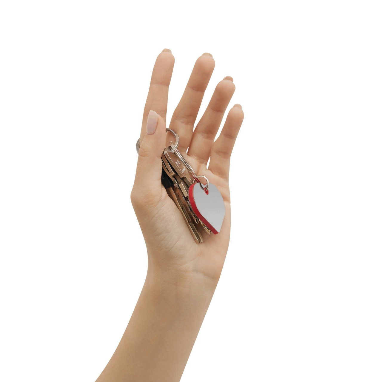 Key ring EVERLASTING LOVE: red plastic heart in between high gloss polished steel hearts| Breloc VEȘNICĂ IUBIRE: inimă roșie din plastic între inimioare din oțel lustruit și lucios