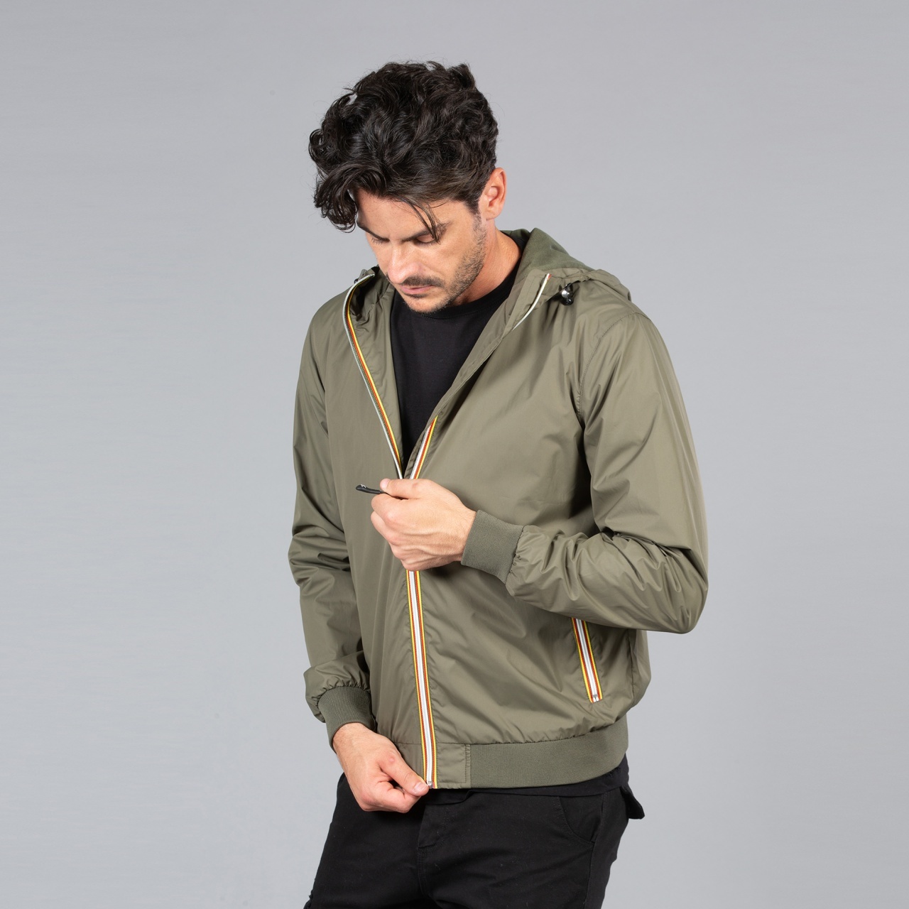 Jachetă Utah pentru bărbați din material soft și lucios, ideală pentru logo personalizat. Design modern cu glugă căptușită, buzunare cu fermoar și cufuri elastice, perfectă pentru comenzi promotionale în volum.
