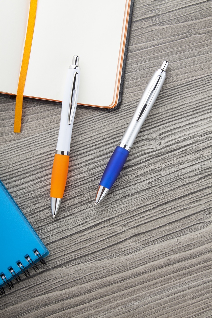 Pixul Lumpy este o alegere excelentă pentru produsele promotionale destinate clienților business. Confecționat din plastic de calitate, dispune de un grip cauciucat colorat care asigură o ținută confortabilă și profesională. Mina albastră oferă o scriere netă și durabilă, iar designul modern cu corp argintiu se potrivește oricărei identități de brand. Beneficiază de posibilitatea de personalizare cu logo-ul companiei dvs., iar comanda este flexibilă în funcție de volumul necesar. Acest pix promotional este perfect pentru distribuții în cadrul evenimentelor corporative, conferințelor sau ca dar pentru clienți fideli.