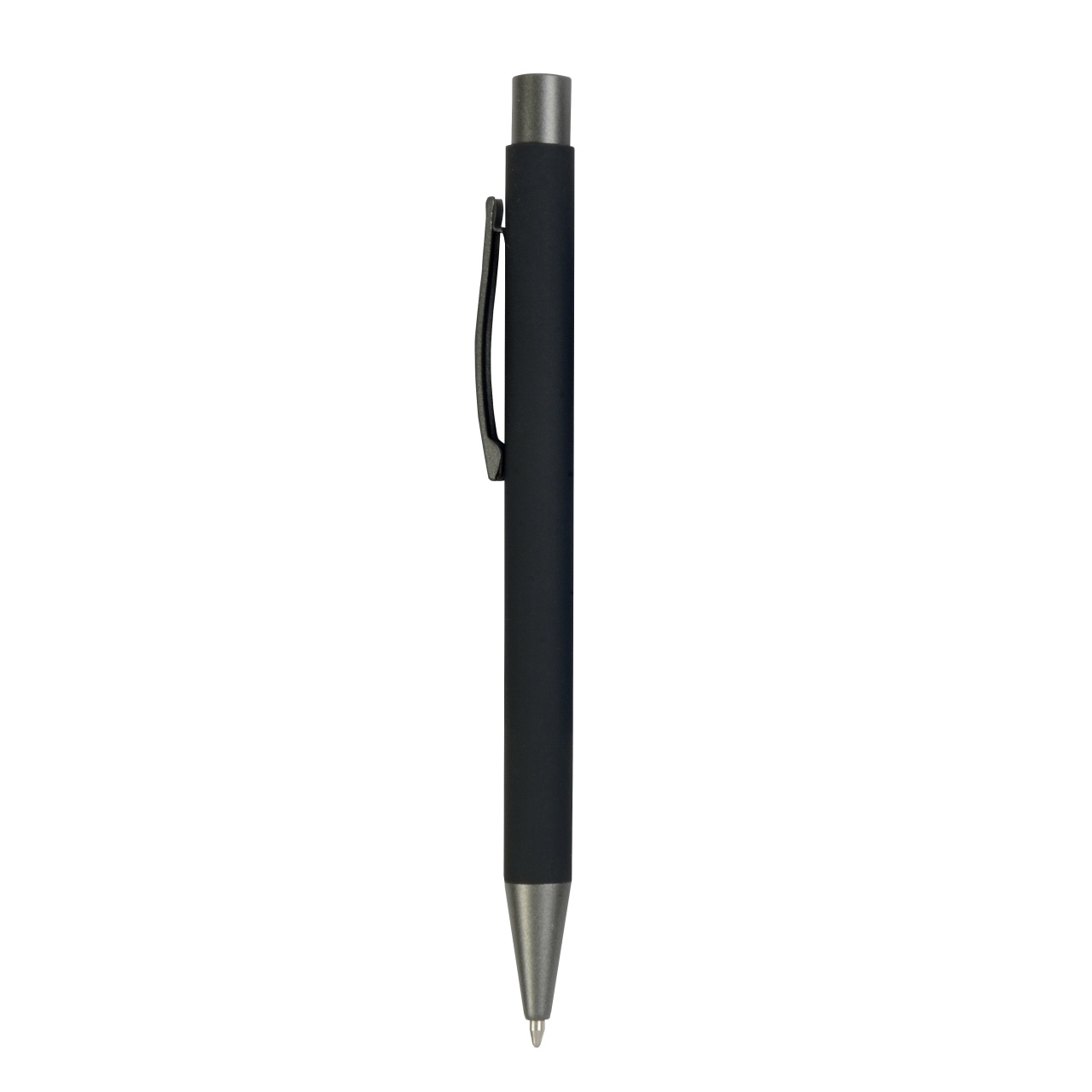 Pix metalic cu mecanism click și finisaj gommato, detalii brunite pentru o imagine profesională. Ideal pentru cadouri corporate și materiale promotionale B2B cu potențial de personalizare logo.