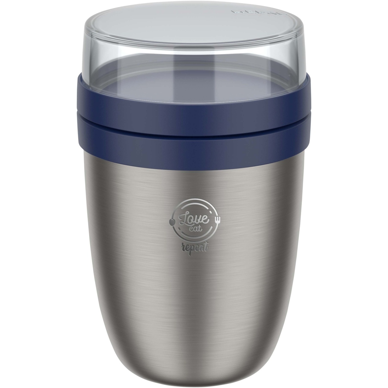 | Recipient izotermic pentru prânz cu două compartimente diferite pentru a păstra ingredientele separate. Ambele recipiente au un capac separat, astfel încât ingredientele să nu se amestece. Păstrează mâncarea caldă timp de 6-8 ore sau rece timp de 12 ore.