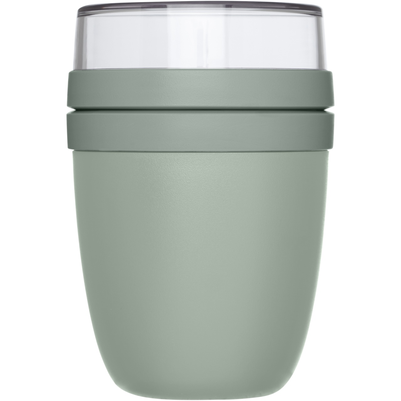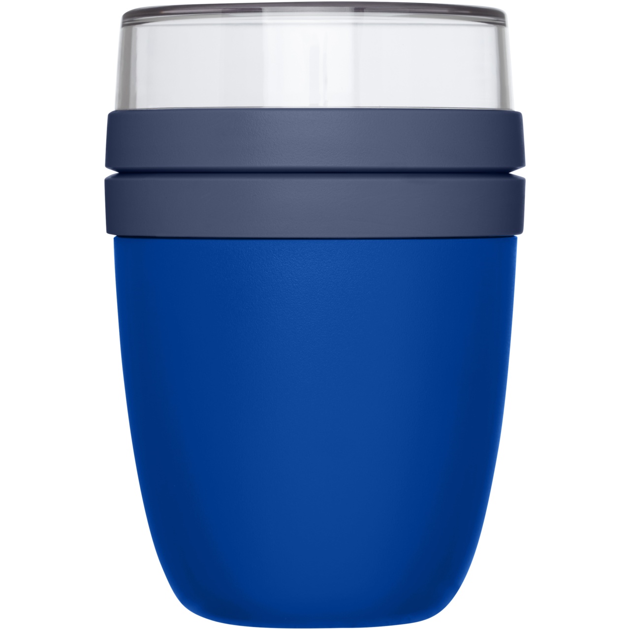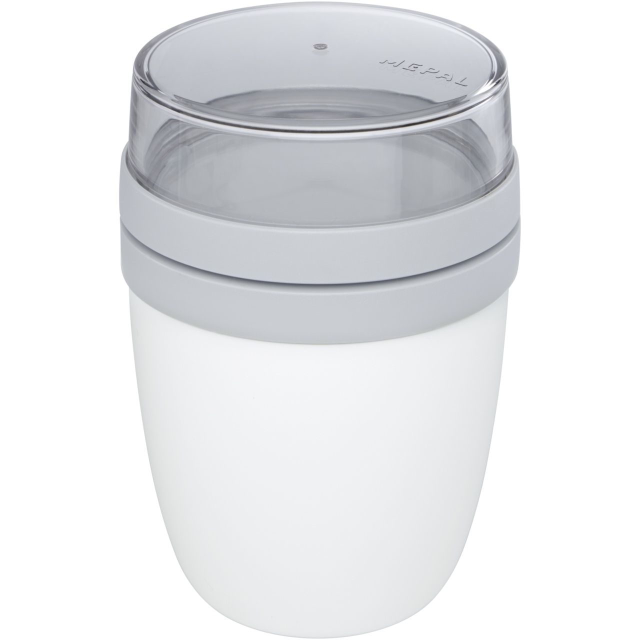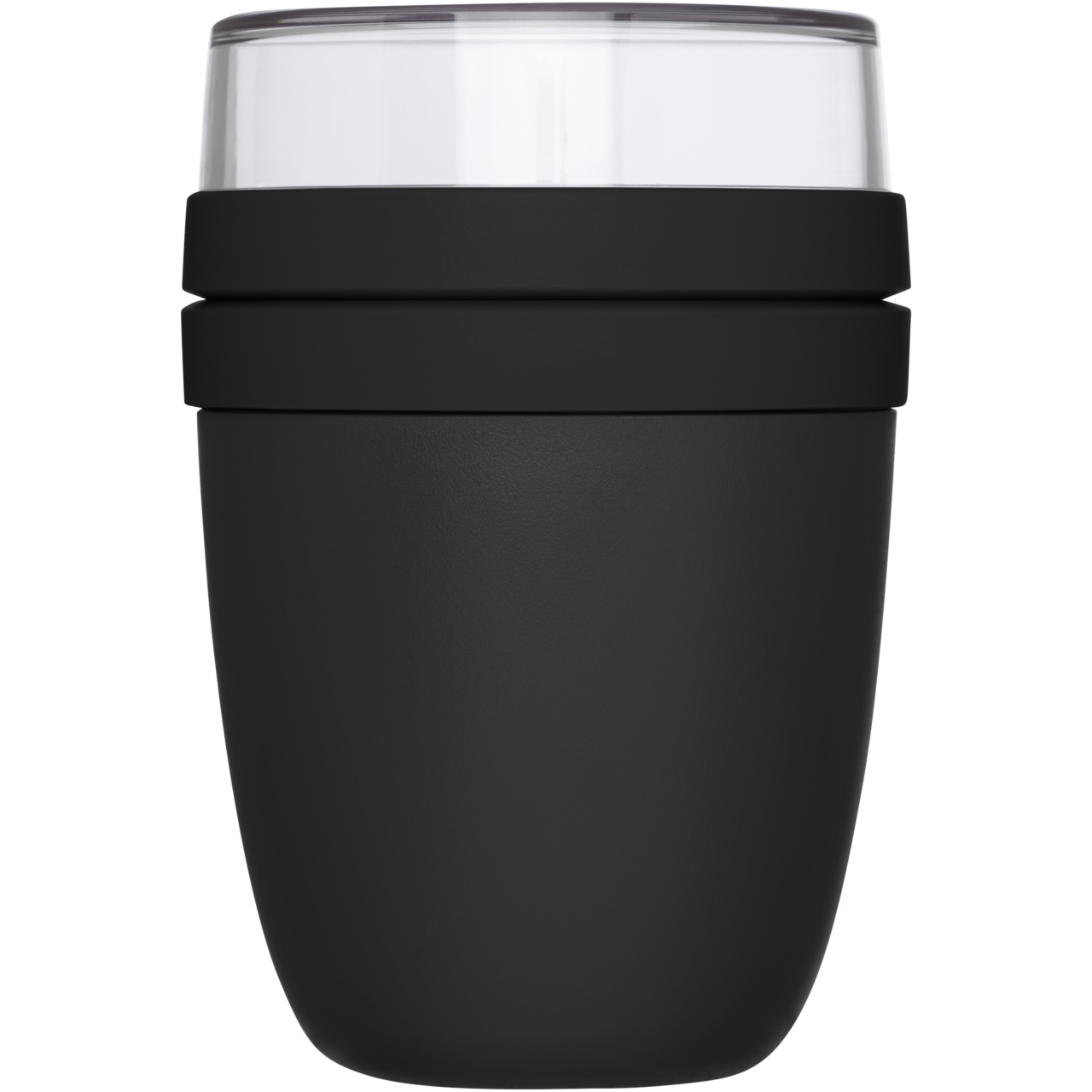 Lunch pot featuring two different compartments to keep the different ingredients separated. Both containers have a separate lid and therefore remain clean. The content of the top transparent container is 200 ml, which means that it can hold about 75 grams of solid food.