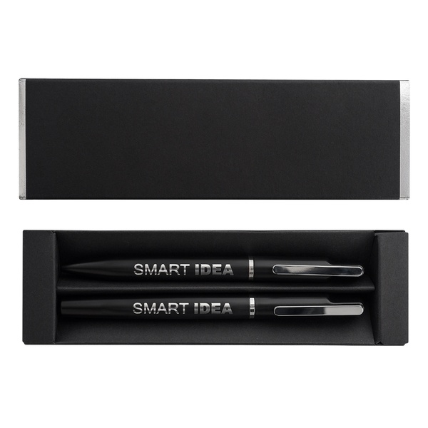 Setul de scris Royal™ TREASURE în finisaj argintiu combină eleganța cu funcționalitate, incluzând un pix cu bilă și un roller pen, ambele realizate din metal de calitate superioară. Fiecare pix din set poate fi personalizat prin gravare a logoului dvs., care se oglindește perfect în detaliile metalice argintii, creând o impresie de exclusivitate și profesionalism. Setul include refil albastru și este conceput pentru a fi ofertă corporativă memorabilă care consolidează relațiile cu clienții și partenerii. Puteți comanda în cantități flexibile, adaptate nevoilor campaniei de branding, cu posibilitate de personalizare după specificațiile dvs. Investiția în acest set premium de scris reflectă valoarea pe care o acordați partenerilor dvs. de afaceri.