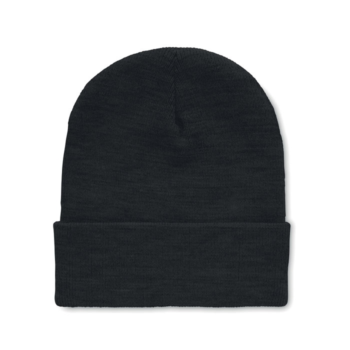 Căciulă unisex din poliester RPET reciclat, moale și extensibilă, cu manșetă tricotată. Ideal pentru promovări corporate, cu posibilitate de personalizare logo și comandă în volum.