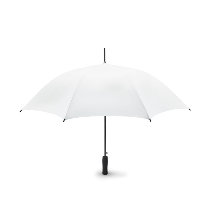 | Umbrelă automată, 23 inchi, pongee 190T, ax și spițe negre metalice. Terminații negre din plastic. Mâner drept negru din material moale EVA. Închidere manuală.