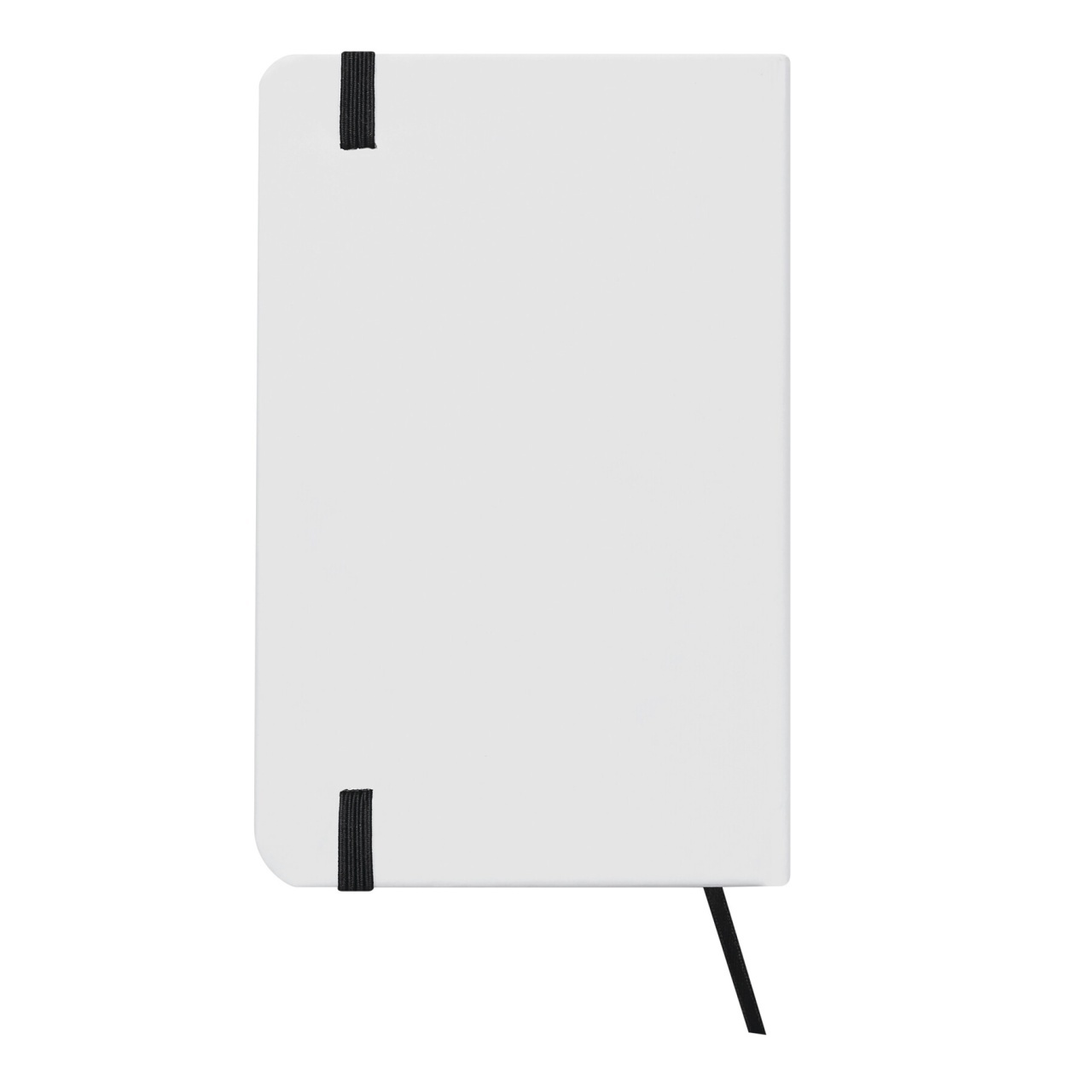 Notebook AUTHOR in DIN A6 format with rounded edges: coloured rubber band to close and integrated bookmark, 80 pages, ruled, 70 g/m²
