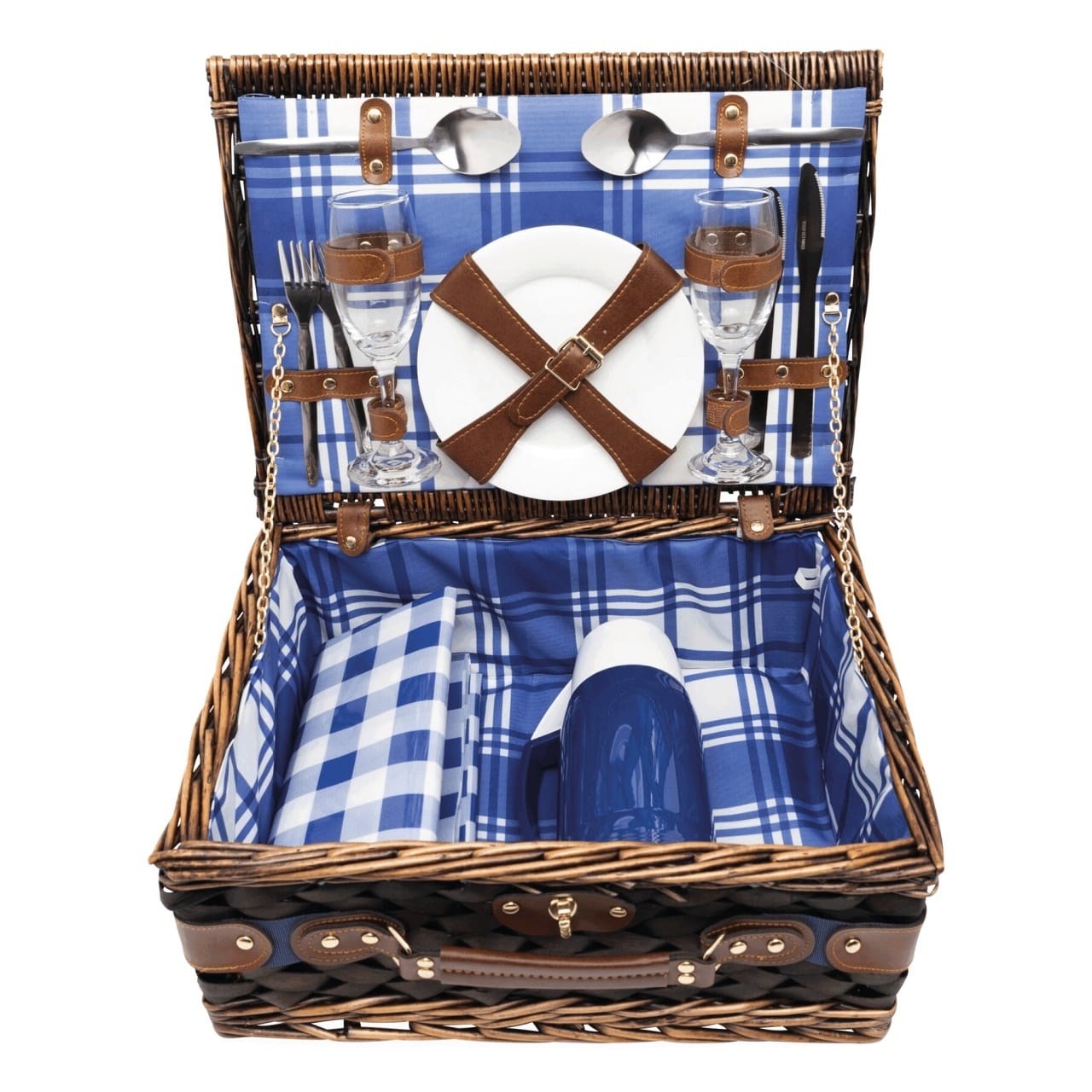 Picnic basket CENTRAL PARK with shoulder strap, includes porcelain dishes for 2 people, cutlery, flask, and a table cloth