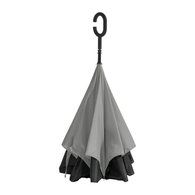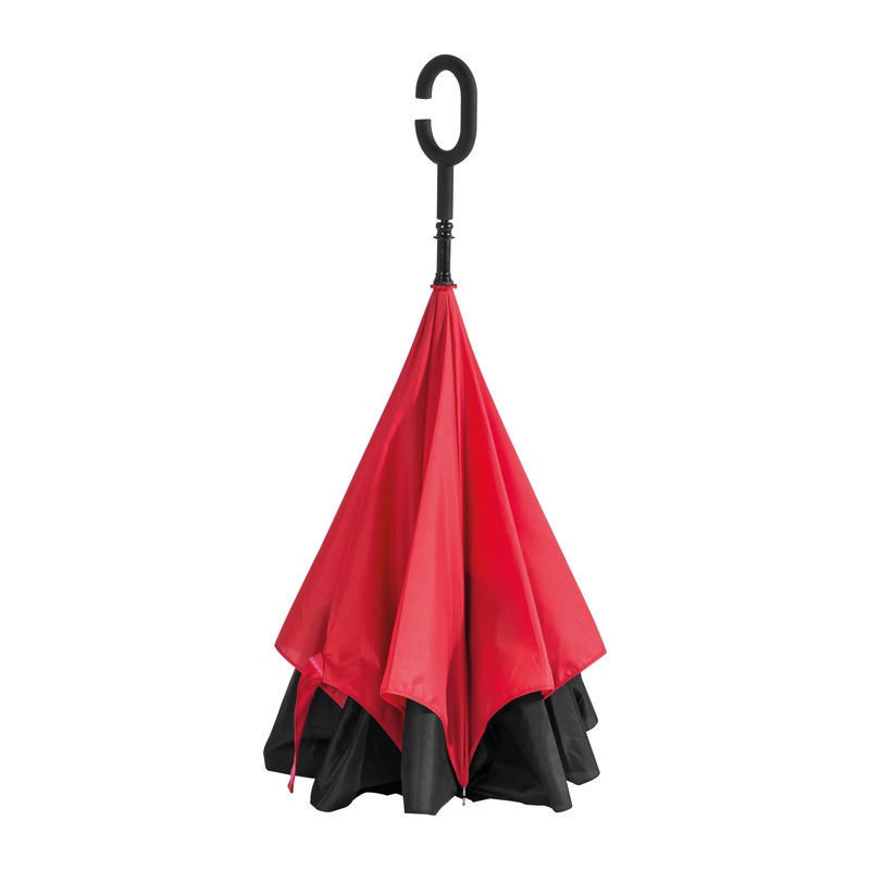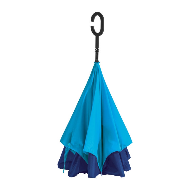 Umbrelă pliabilă, reversibilă, din material 190T pongee, cu protecție UV, cu mâner practic în formă „C”, prin care se poate agăţa pe încheietura mâinii. Cu acest produs vă puteţi urca în mașină fără să vă udaţi!