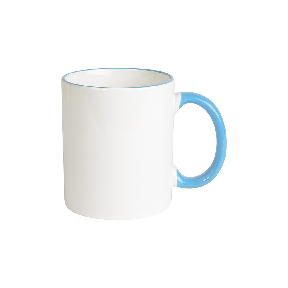 Cană ceramică albă, calitate A, cu mâner și margine colorate, pentru mașina de spălat vase